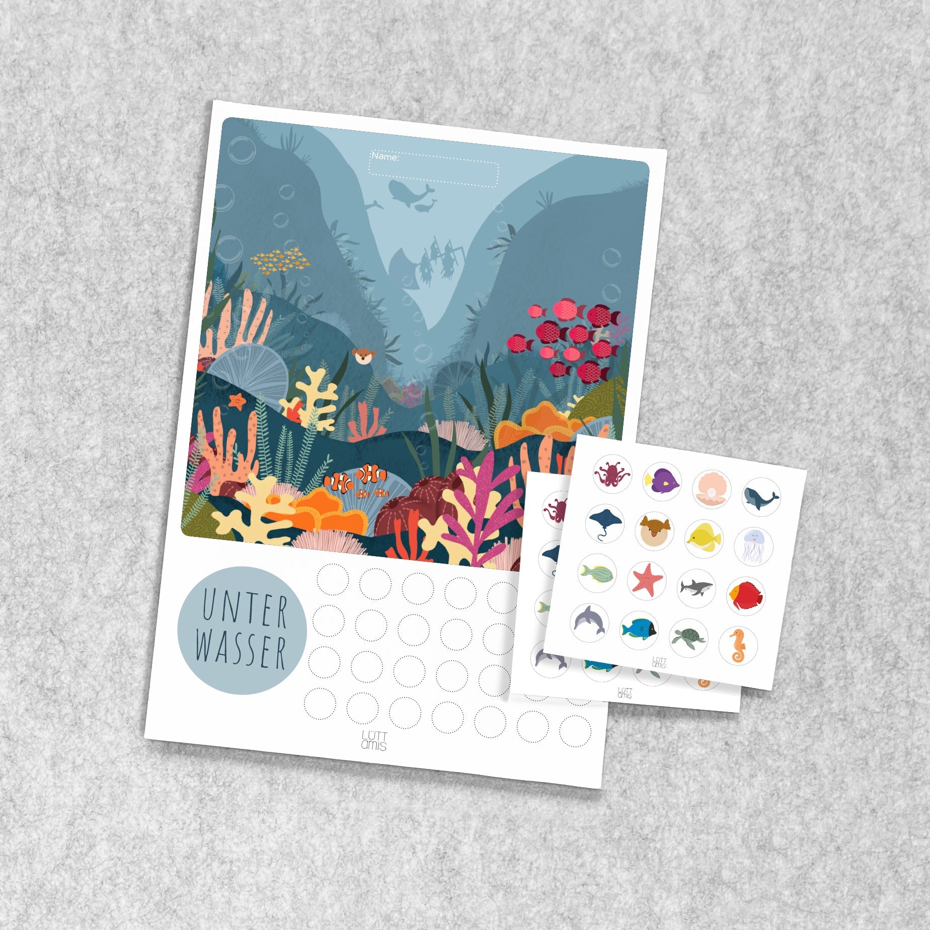 Mache das Zähneputzen und das Erledigen von Aufgaben zum spannenden Unterwasser-Abenteuer! 🐠🌊 Unser „Unterwasser DoIt“-Poster ist die perfekte Möglichkeit, Kinder zu motivieren und ihre Erfolge – wie z.B. das regelmäßige Zähneputzen – zu feiern. Das Poster zeigt eine faszinierende Unterwasserwelt, die mit 16 verschiedenen Aufklebern aus zwei Stickerbögen individuell gestaltet werden kann.